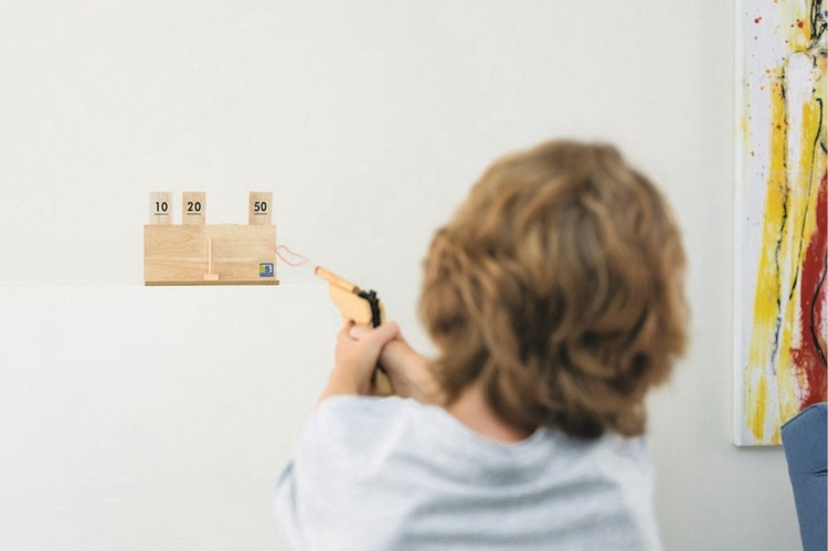Super zabawa i świetny trening oka dla młodego strzelca. Mini strzelnica wykonana jest z wysokiej jakości drewna. Zestaw składa się 'ruchomych' tabliczek z punktami, które po celnym trafieniu zamykają się.