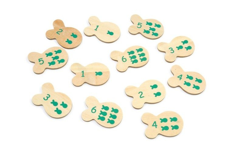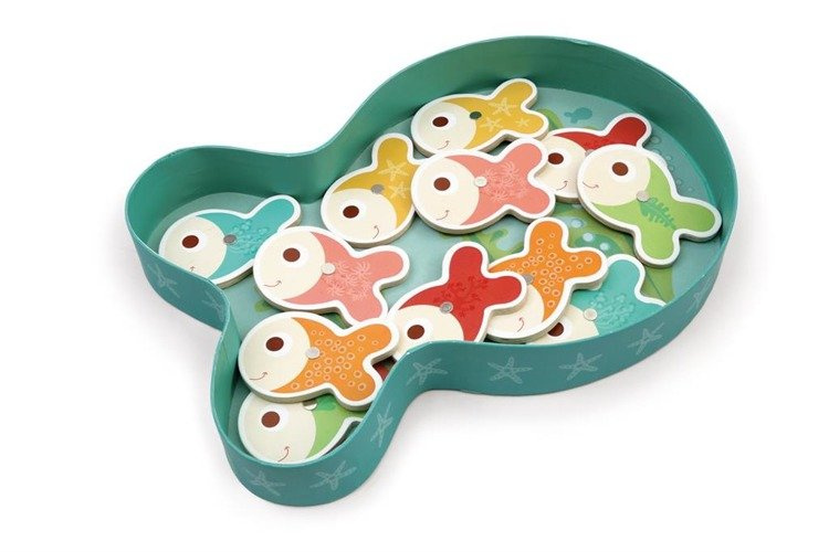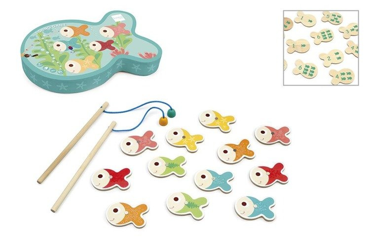 Dzięki grze dziecko poznaje liczby. Gra rozwija koordynację ruchowo-wzrokową, zręczność i cierpliwość. W zestawie znajduje się 12 rybek oraz dwie wędki. Produkt wykonany z drewna, zapakowany w śliczne kolorowe pudełko w kształcie rybki.